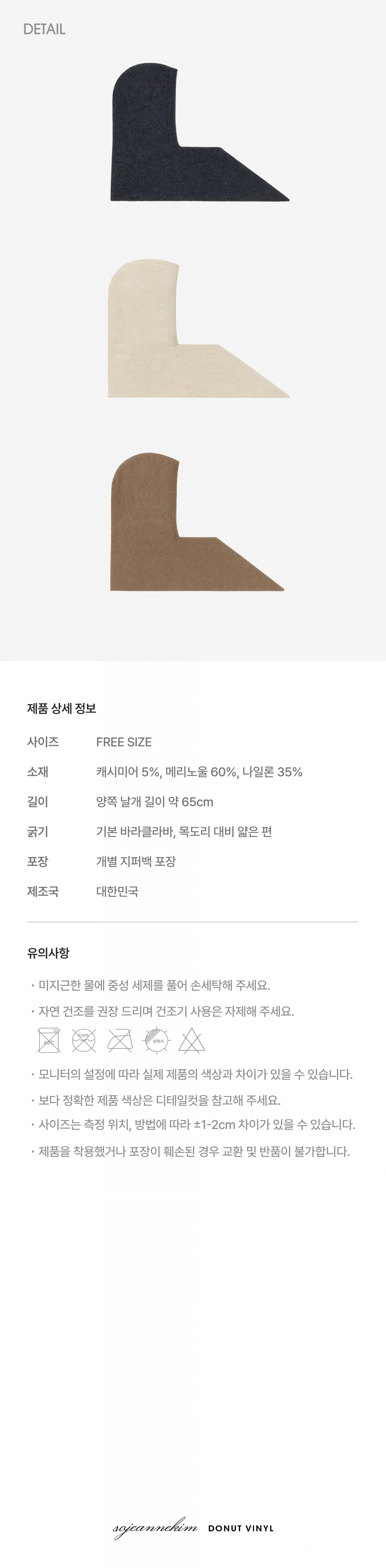 캐시미어와 울을 혼용한 소재로 가볍고 따뜻하며, 얼굴에 닿아도 따끔거림 없이 부드러운 착용감을 느낄 수 있습니다. 양옆을 리본처럼 묶어 연출하거나 무심하게 툭 걸쳐 사용하고 목에 둘러 머플러처럼 착용하는 등 다양한 스타일링이 가능합니다. 다크한 그레이부터 밝은 베이지, 브라운까지 겨울 코디와 자연스럽게 어우러지는 3가지 컬러로 만나보세요.