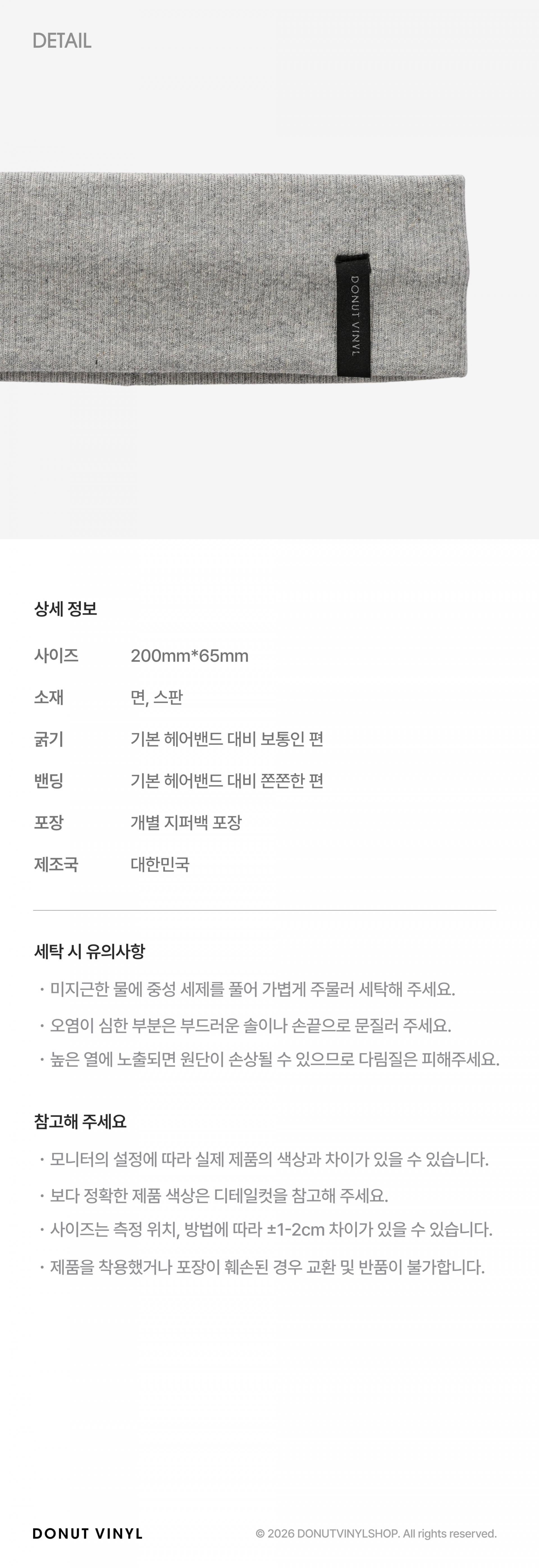 운동은 물론 일상 스타일링에도 편안하게 활용하기 좋은 도넛바이닐샵의 베이직 헤어밴드. 라벨 디테일로 포인트를 더한 다섯가지 컬러를 만나보세요.