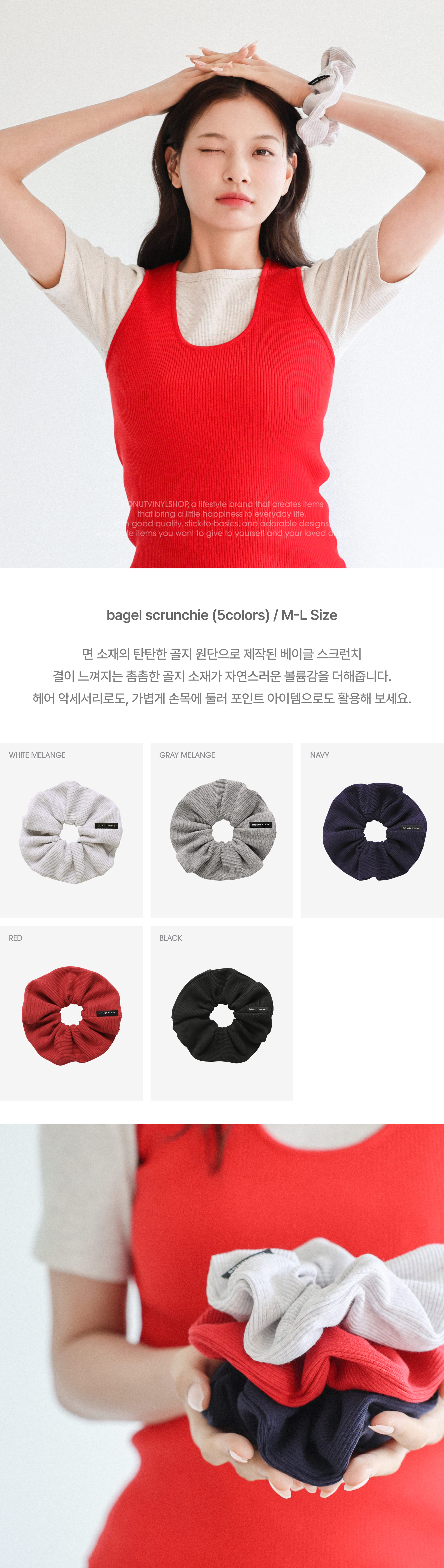 면 소재의 탄탄한 골지 원단으로 제작된 베이글 스크런치