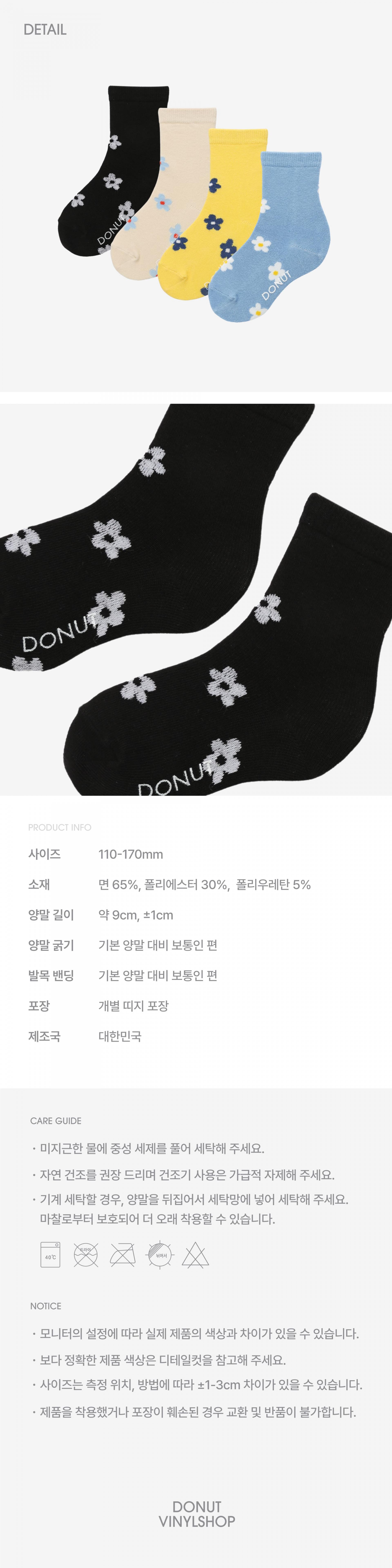 걷는 길마다 '꽃길'이길 바라는 마음으로 만든 양말. 도넛바이닐샵에서 가장 많은 사랑을 받고 있는 ‘플라워카펫(flower carpet)’이 키즈 버전으로 출시되었습니다.